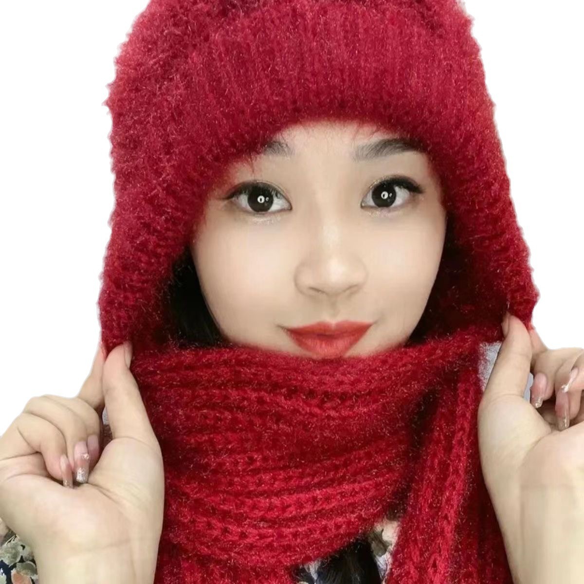 帽子女新款加绒加厚围巾一体风雪帽秋冬季松鼠绒毛线帽保暖网红帽