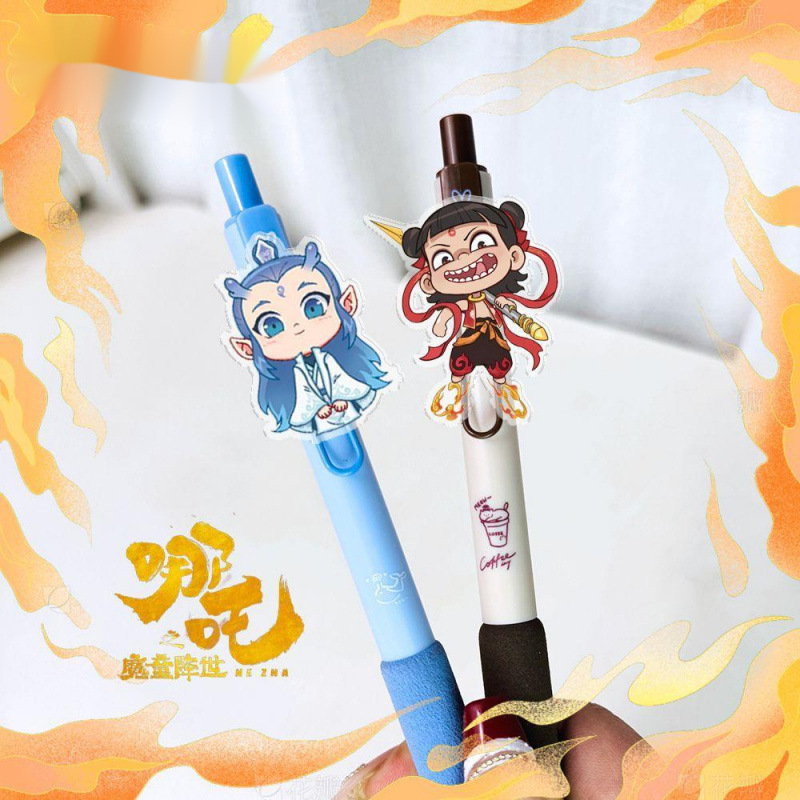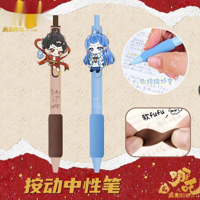 哪吒之魔童闹海周边高颜值按动同人藕饼哪吒敖丙中性笔学生考试一