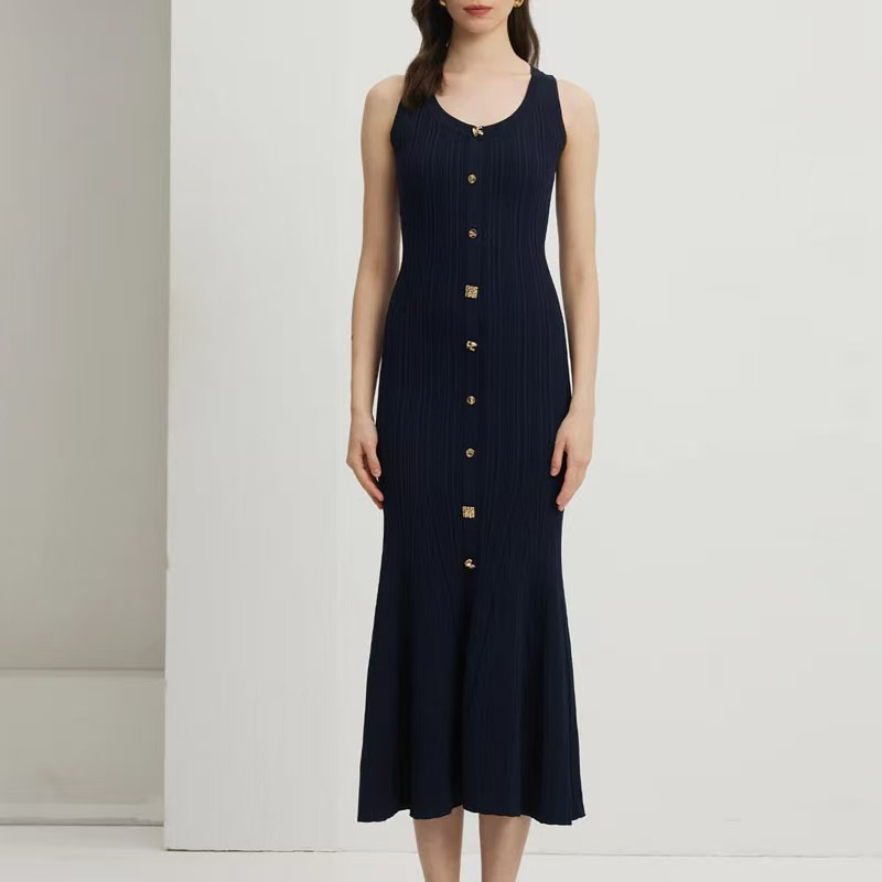 | 1 | 跨境欧美春夏季广州十三行新款团里无袖长裙高级感十三开叉针织连衣裙 | 跨境风格类型 | 气质优雅 |