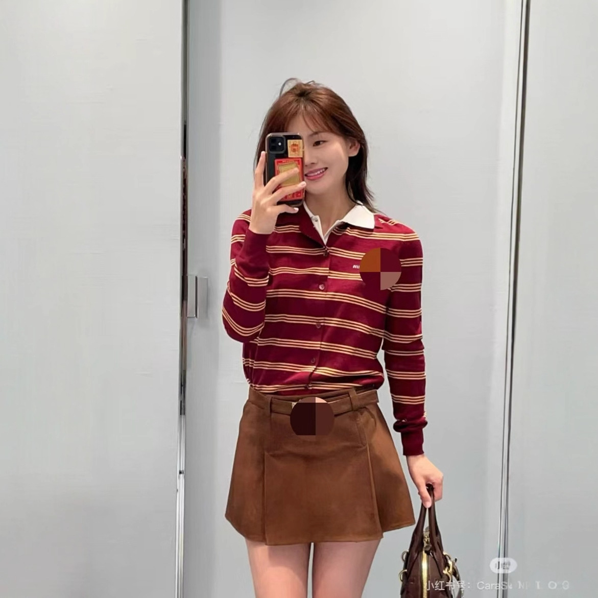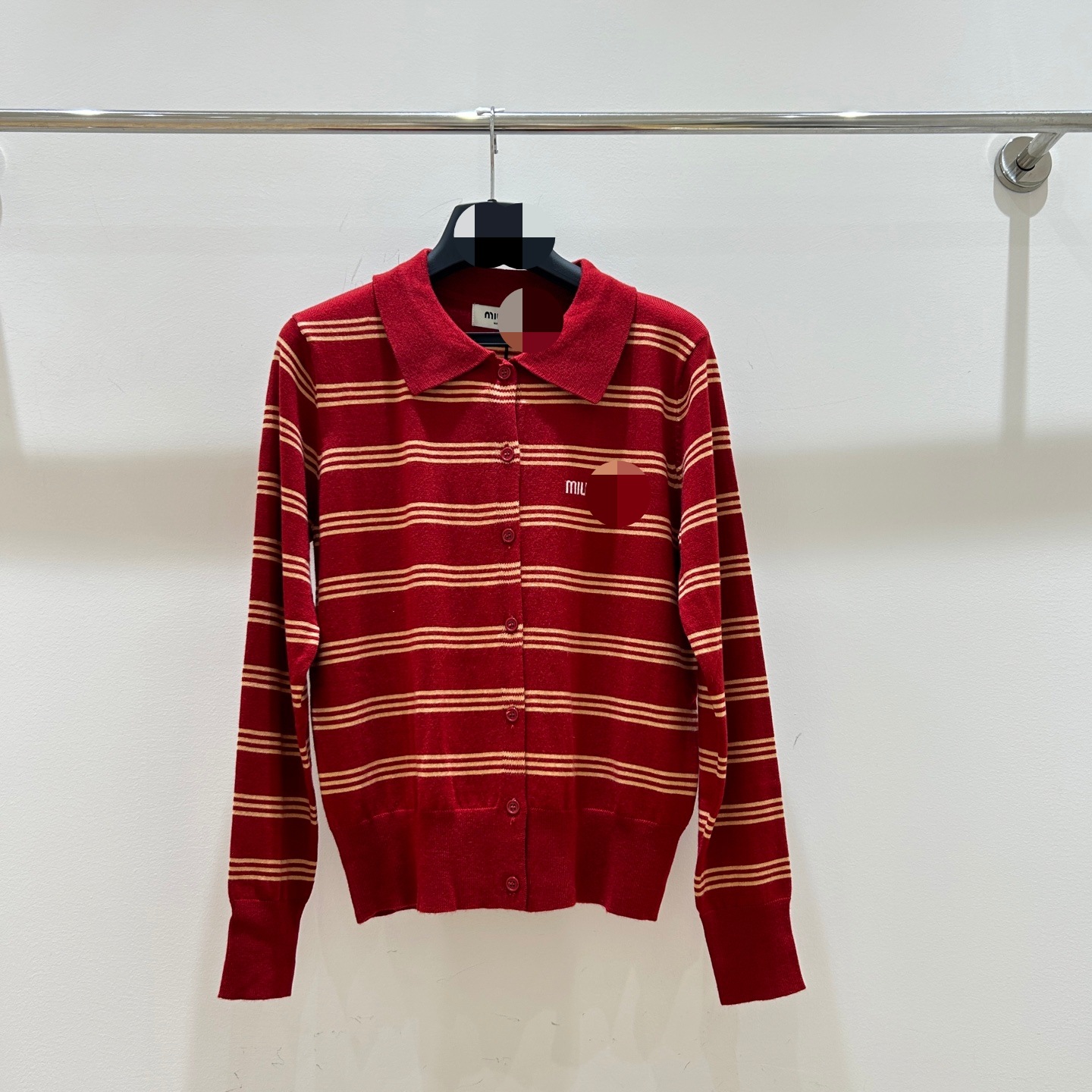 南油女装MM家条纹polo miu系红色开衫针织上衣女夏薄款开衫学院风