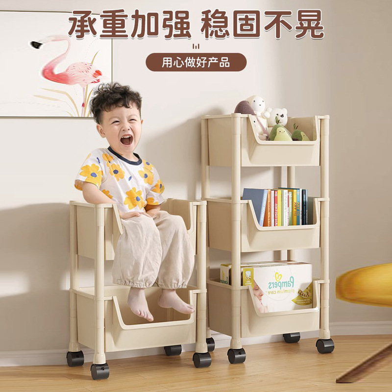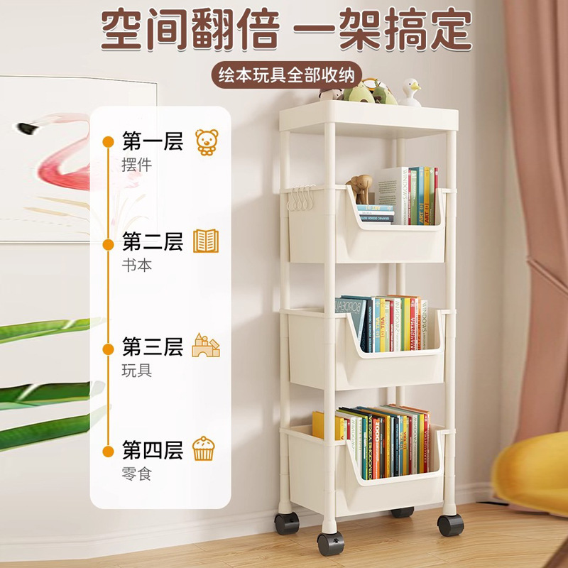 置物架书架可移动收纳架用小推车带轮落地简易书柜儿童玩具收纳架