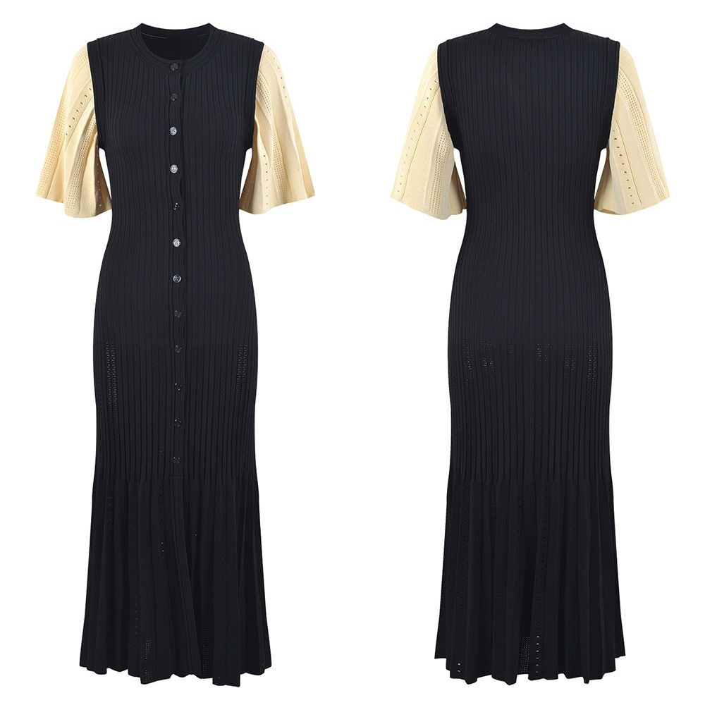 | 门襟 | 套头 | 2 | 广州十三行新款欧美风跨境外贸女装2025时尚两色针织单排扣长裙连衣裙 |