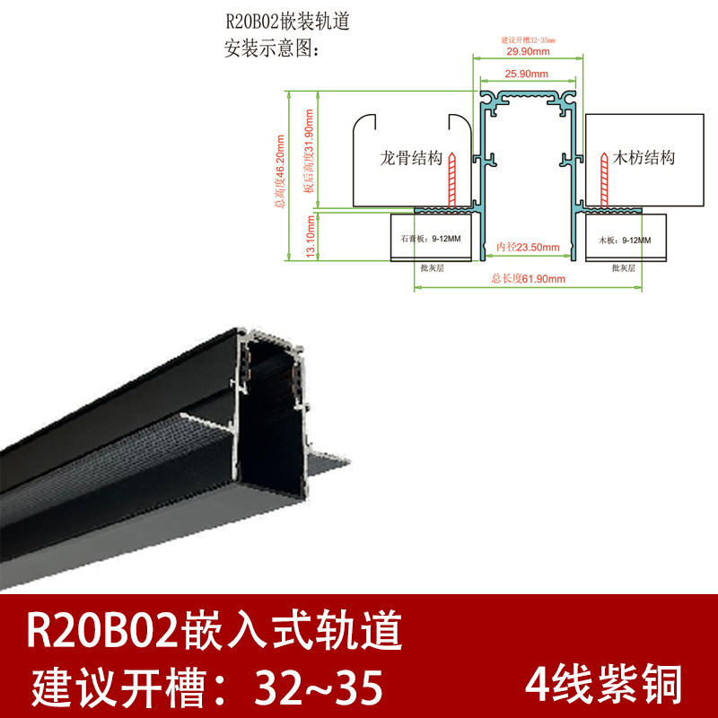 | 材质 | 铝材 | 功率 | R20B02嵌装轨道 |