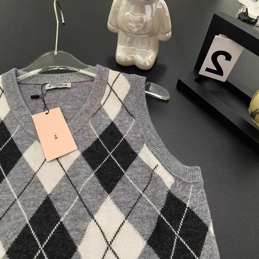 Miu系南油女装25春夏新款撞色针织背心菱格马甲学院风V领上衣女夏