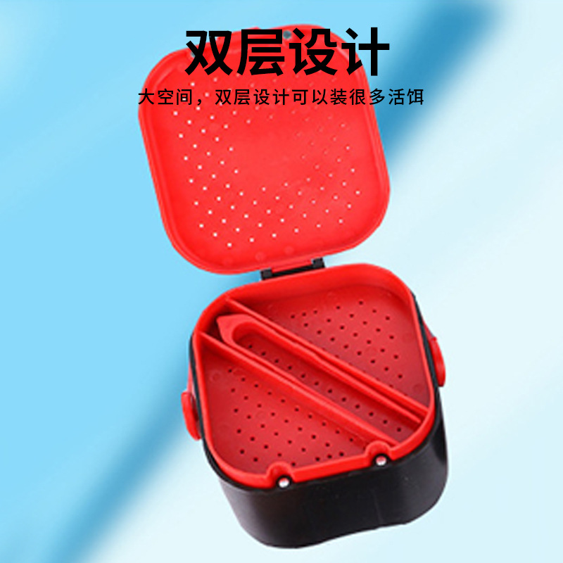 塑料双层蚯蚓盒透气蚯蚓保鲜盒活体红虫盒鱼饵盒带孔保鲜活饵盒