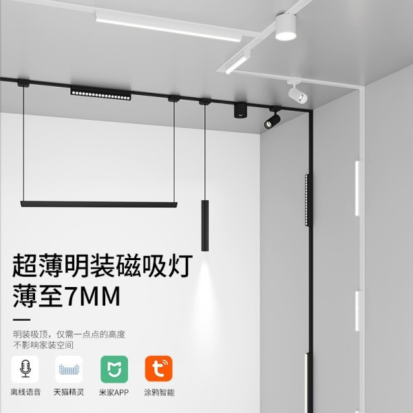 led超薄磁吸轨道灯米家智能家居无主灯明装免开孔吊灯12W可调光