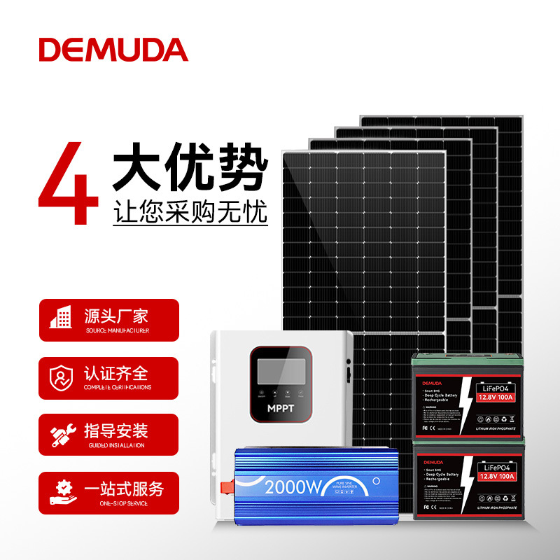 2000W离网太阳能发电系统A级电芯A级太阳能板户外光伏发电系统