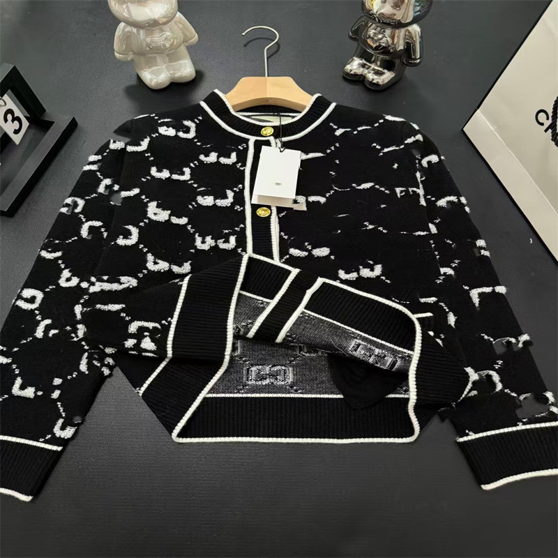 2025高定新品圆领百搭老花字母logo圆领单排扣羊毛针织开衫外套