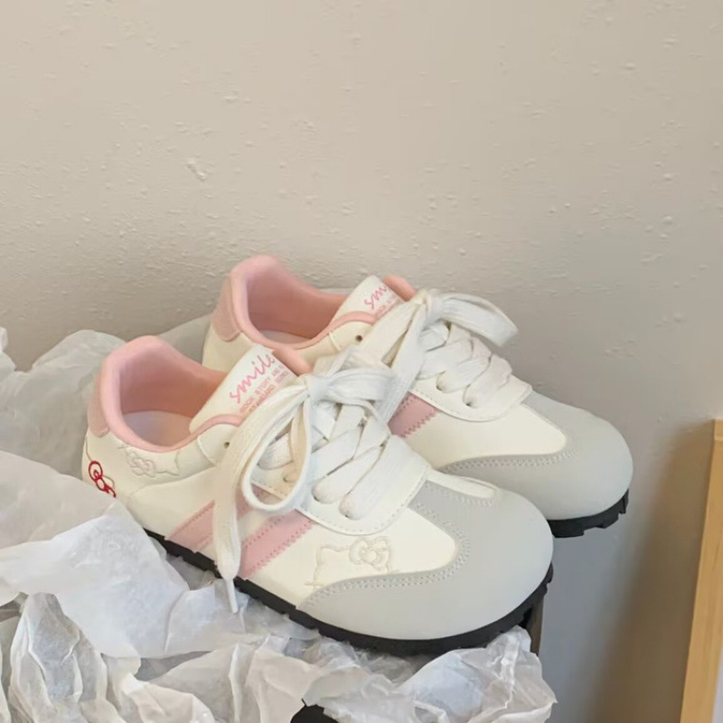 可爱KT猫刺绣德训鞋女2025新款韩系小众chic百搭板鞋休闲小白鞋女