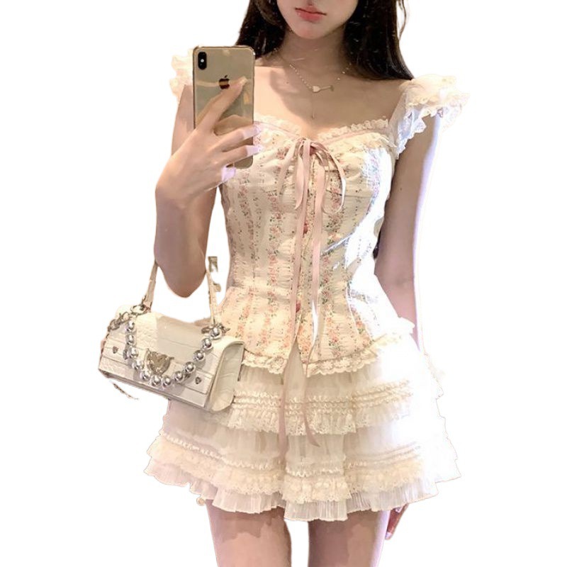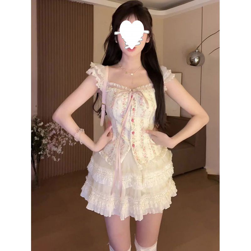 2025新款纯欲风甜美显瘦气质上衣百搭蓬蓬短裙两件套装