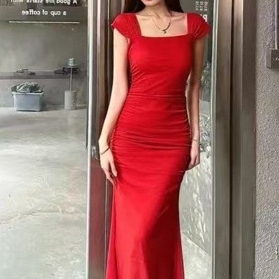 法式气质温柔纯欲风夏季吊带连衣裙女修身显瘦设计感辣妹鱼尾长裙