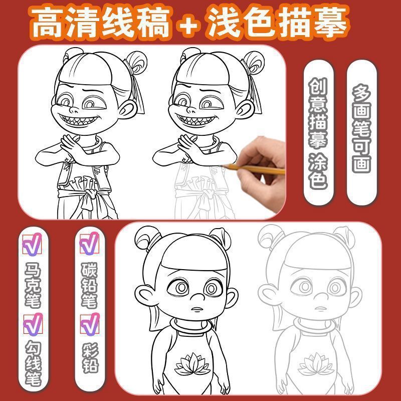 哪吒2魔童闹海周边手绘临摹本儿童绘画本漫画涂色描画简笔画册礼
