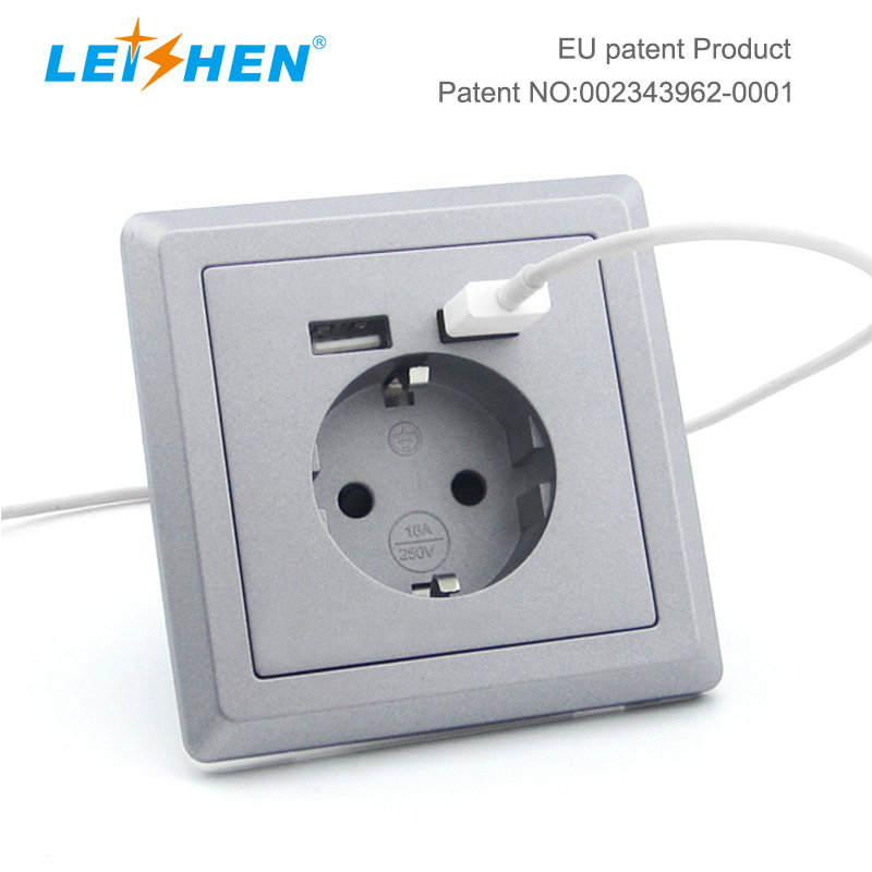 面板80型欧标TUV认证插座德式欧洲插座带usb欧式墙壁电源插座