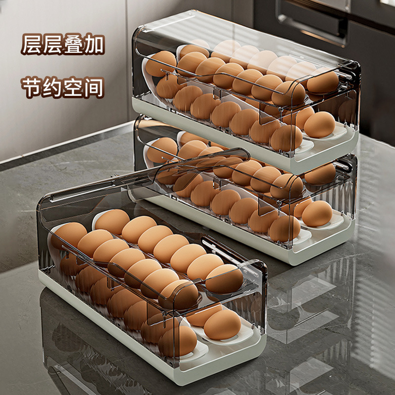 厨房多功能食品级鸡蛋架计时滚动保鲜滑梯收纳可拆卸易清洗鸡蛋盒