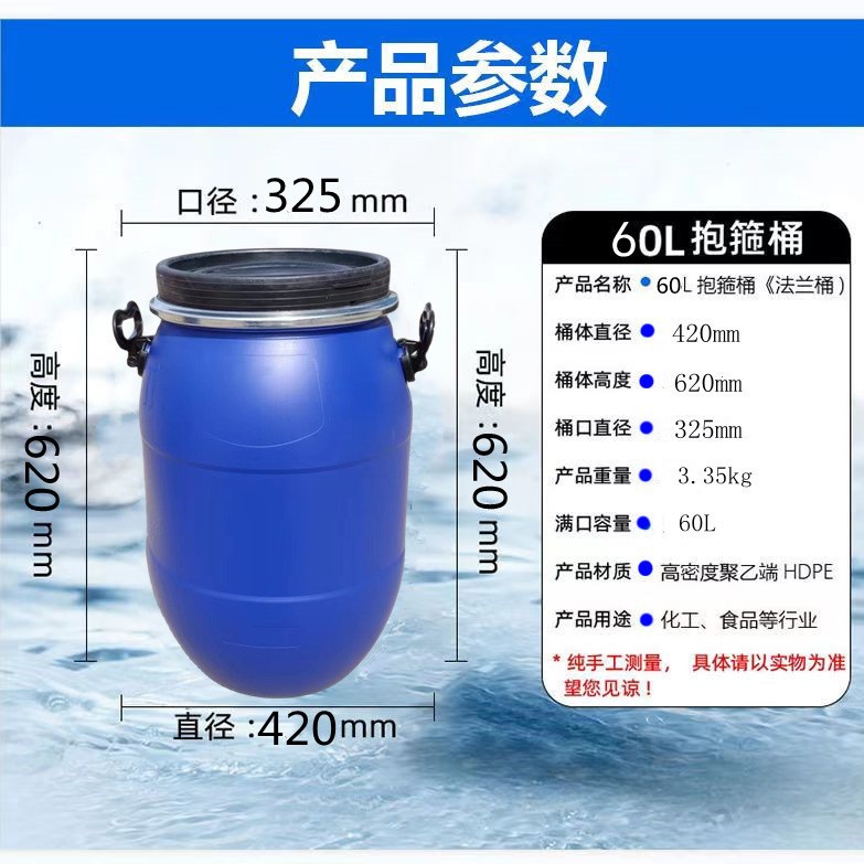30升带手扣开口塑料桶30L耐酸碱防腐蚀化工包装卡箍桶30kg蓝色桶