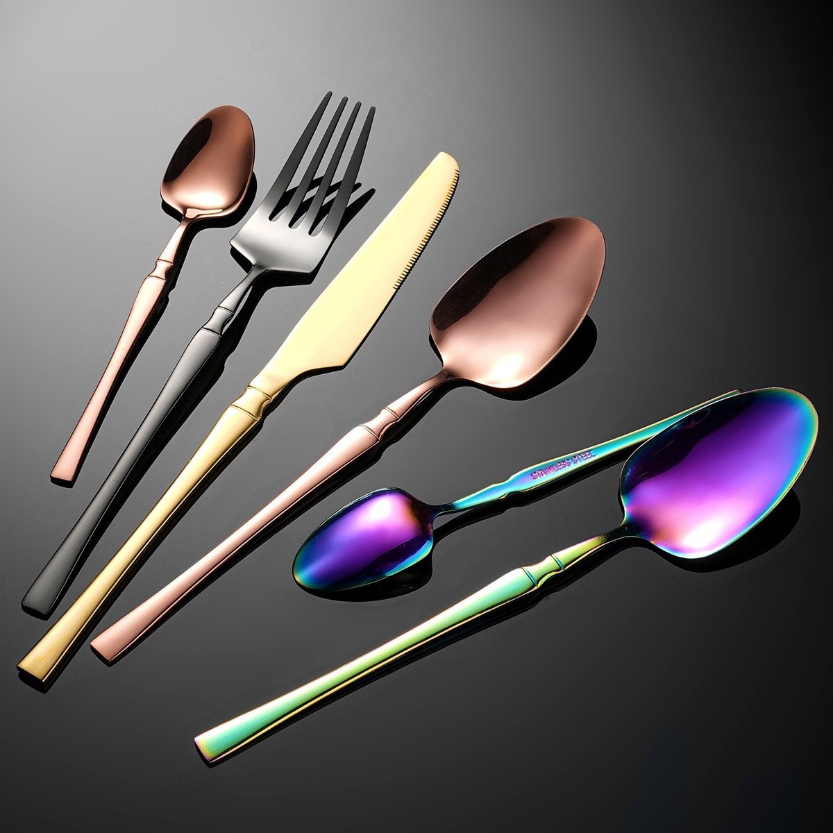 颜色 | 410小蛮腰薄款玫瑰金茶叉 | 颜色 | 410小蛮腰薄款幻彩餐勺 |