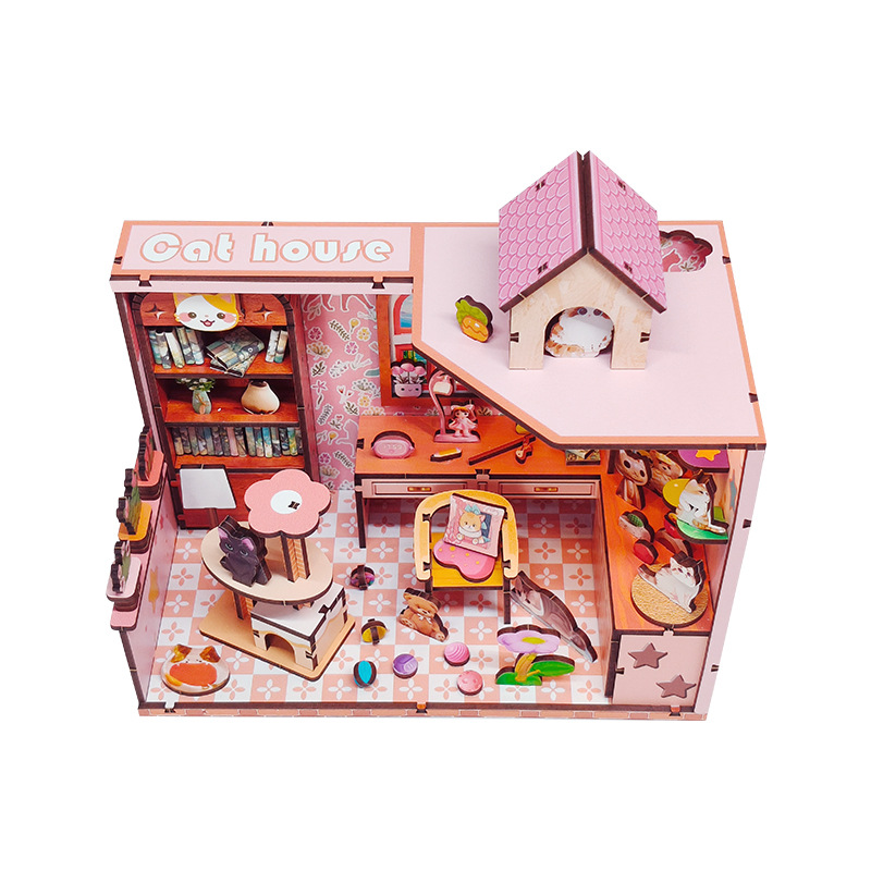 木质diy小屋猫咪微缩场景手工拼装房子儿童益智玩具摆件生日礼物