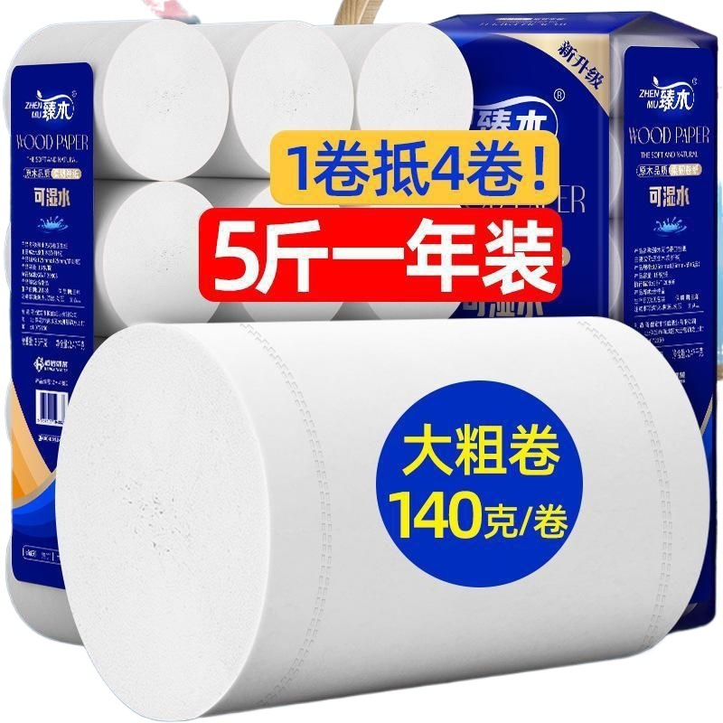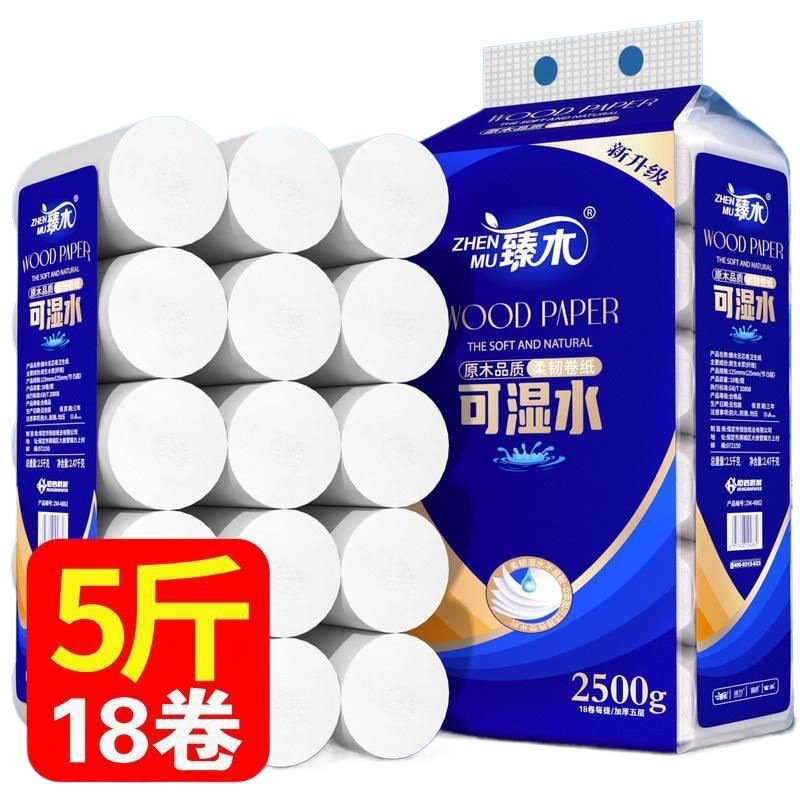 臻木卫生纸2500克18卷5层大粗卷纸巾宿舍卷筒纸大包手纸家庭装