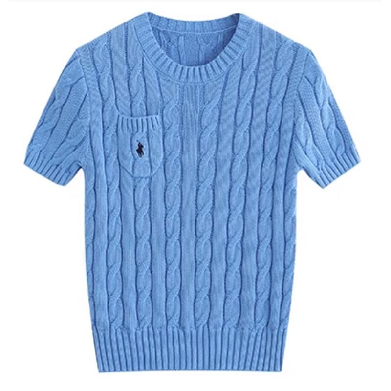 南油高货女装 RL小马刺绣纯棉麻花针织短袖 韩系百搭圆领短袖上衣