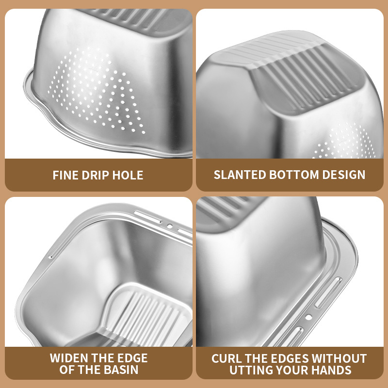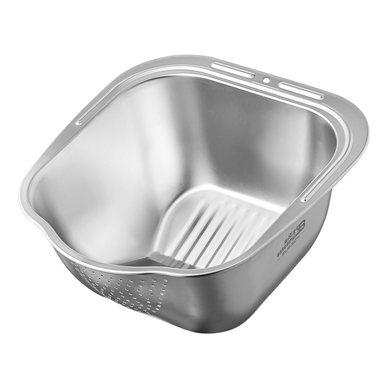 加厚304不锈钢沥水篮食品级家用洗菜厨房淘米神器漏盆筛网水果盆