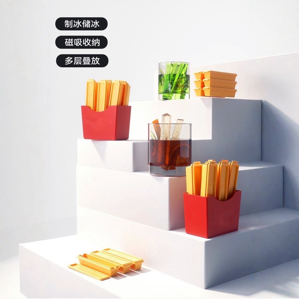 薯条冰块模具薯条按压冰格制冰盒家用自制冰神器创意磁吸冰箱贴纸