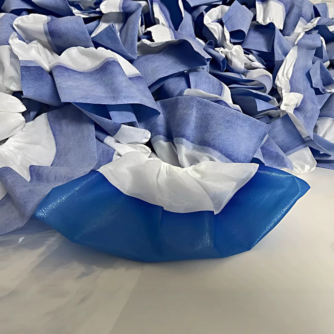 厂家现货一次性无纺布鞋套PP透气加厚耐磨防水PE覆膜室外防滑鞋套