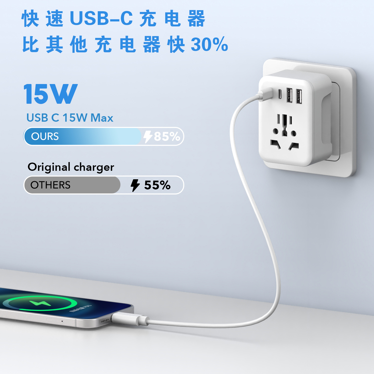 跨境电商批发爆款转换插头全球通用USB快充旅行便携适配器酒店