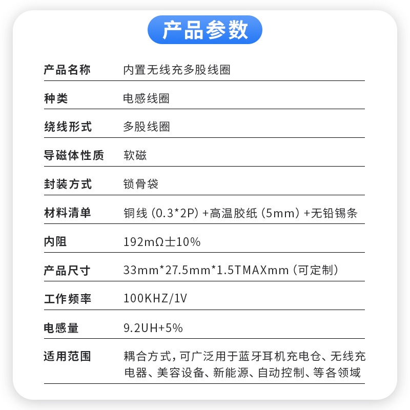 现货无线充电线圈接收端内置多股线圈适用于无线充蓝牙耳机充电仓