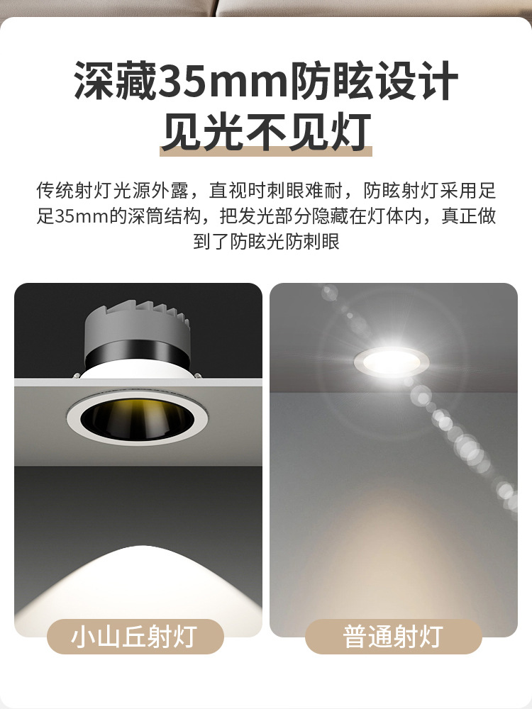 功率 | 【特惠小山丘光效无光斑】7W雅白-白光开孔7-8cm | | 功率 | 【升级小山丘光效无光斑】7W黑杯-暖光开孔7.5-8cm |