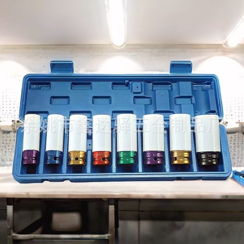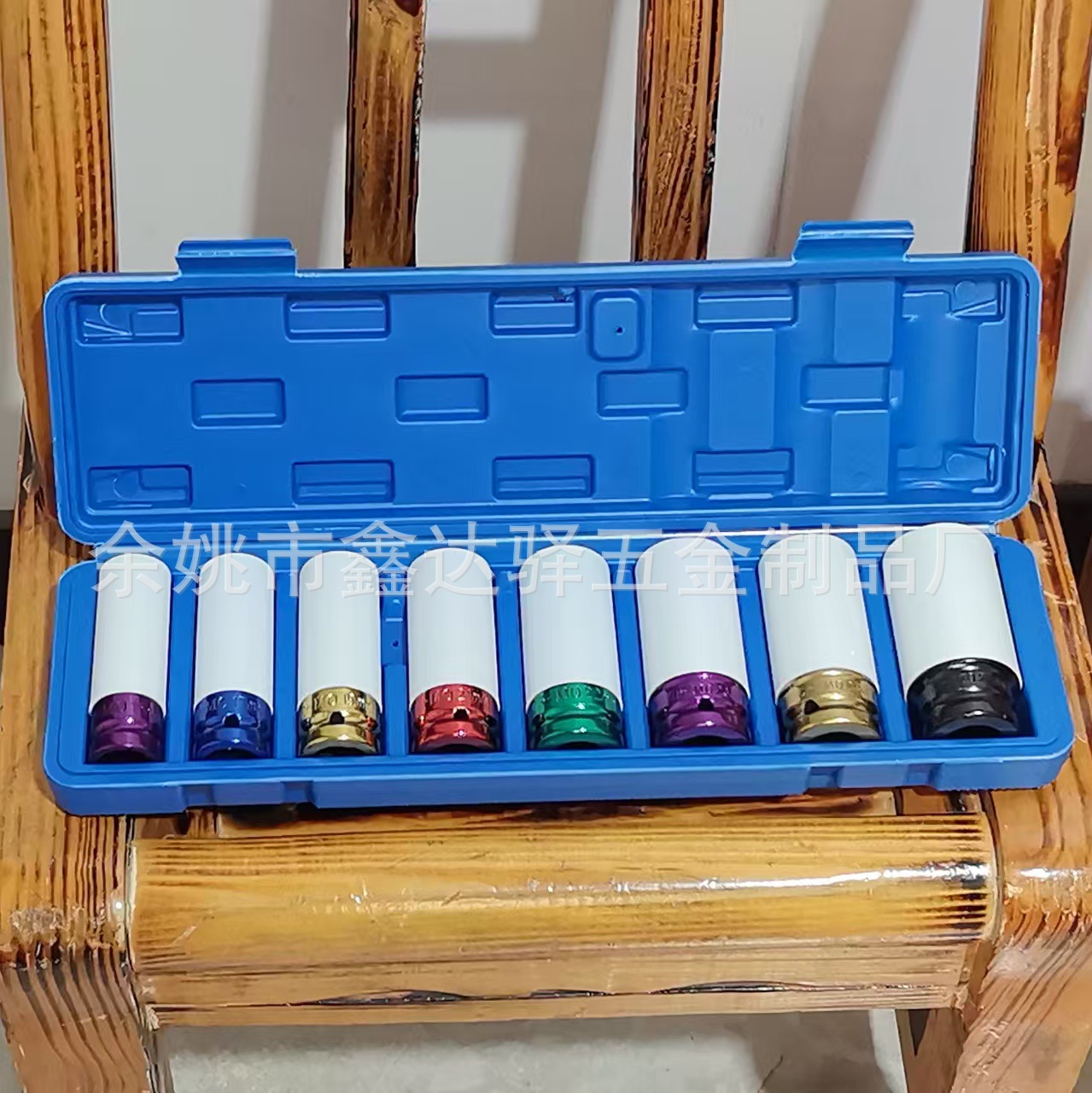 气动轮胎拆装保护套筒套装亮面彩色轮胎专用套筒八件套维修