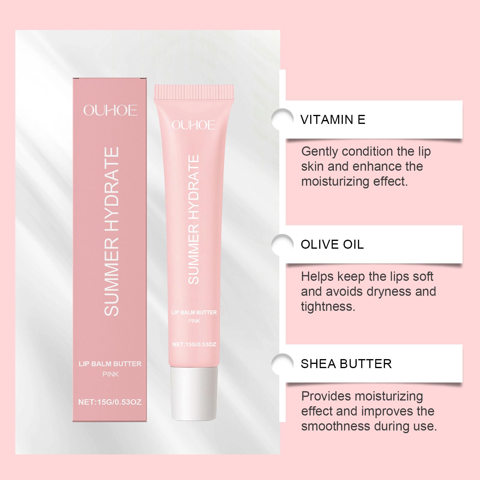 OUHOE粉色润唇膏 滋润保湿唇部肌肤温和清洁角质死皮淡化唇纹唇油