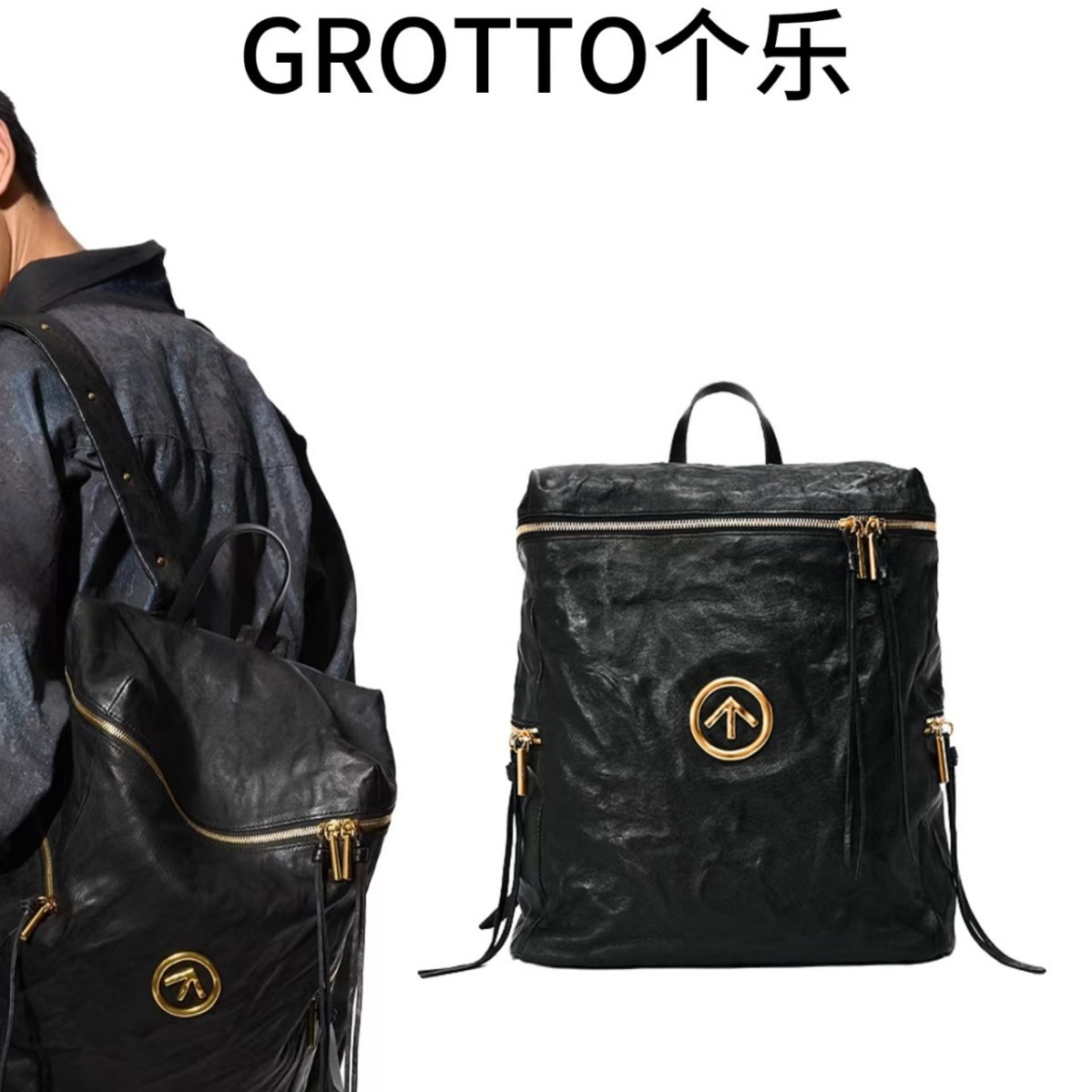 【现货】GROTTO个乐双肩包大号褶皱黑石软皮电脑包通勤旅行包