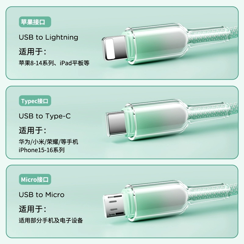 冰晶渐变色一拖三数据线typec超级快充三合一充电线适用华为快充