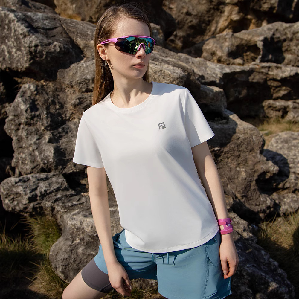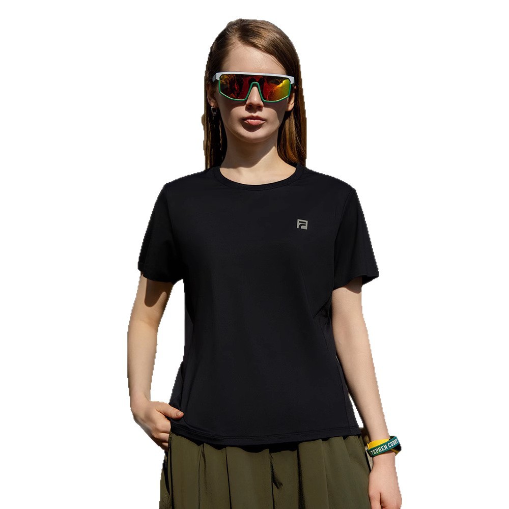 新款圆领冰丝短袖女t恤正肩黑色凉感透气运动速干t恤短袖上衣女