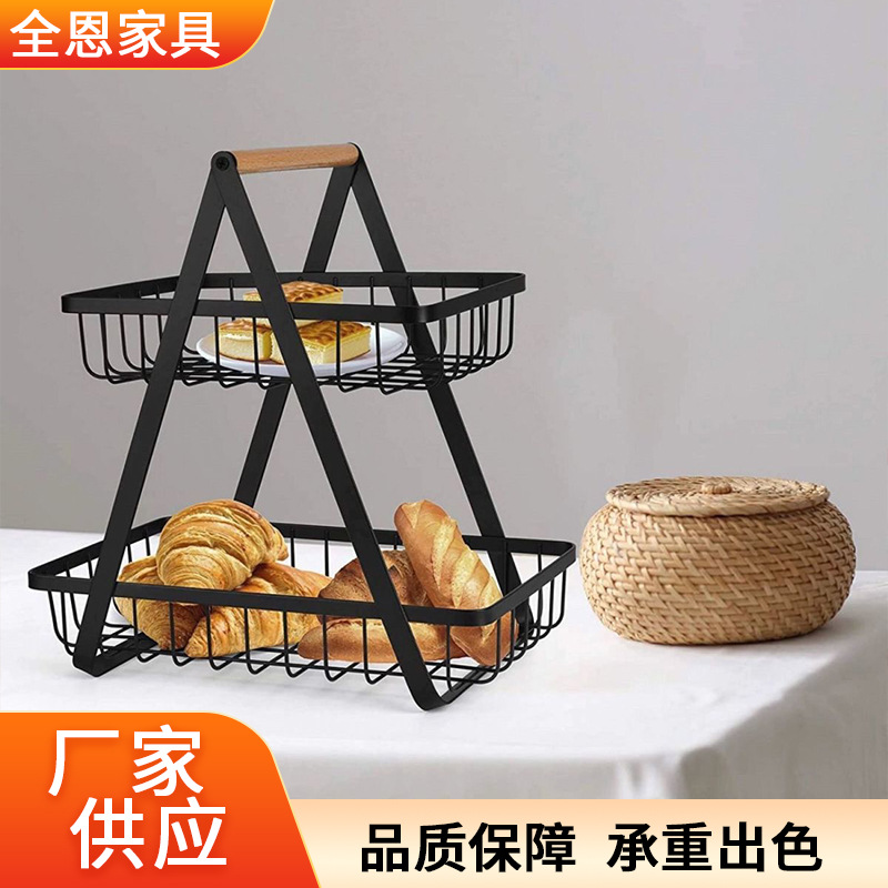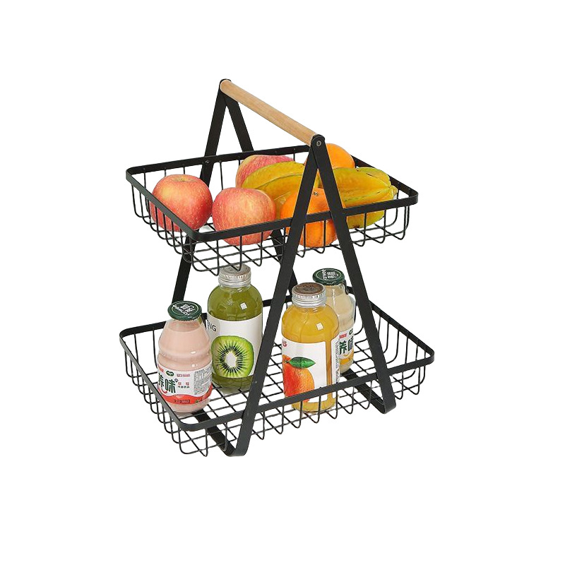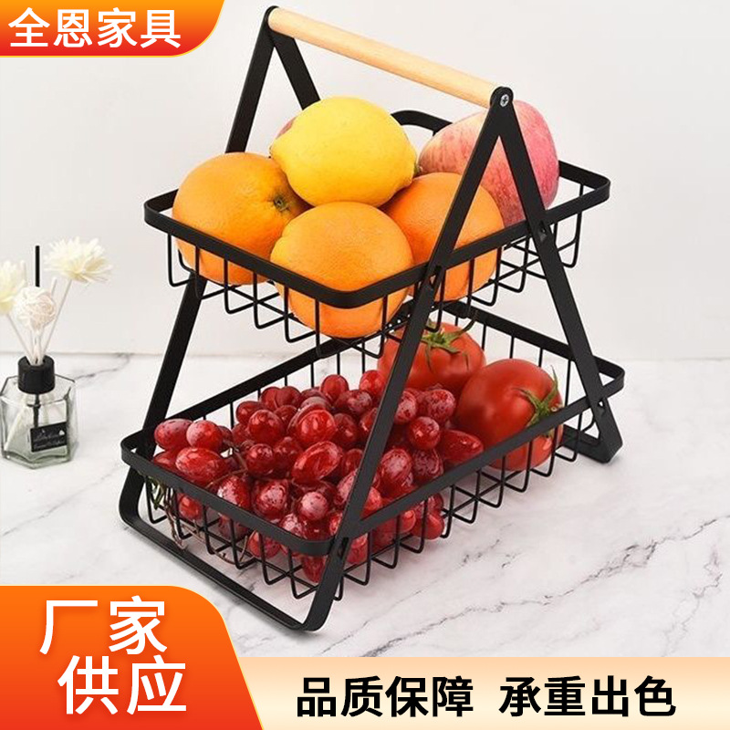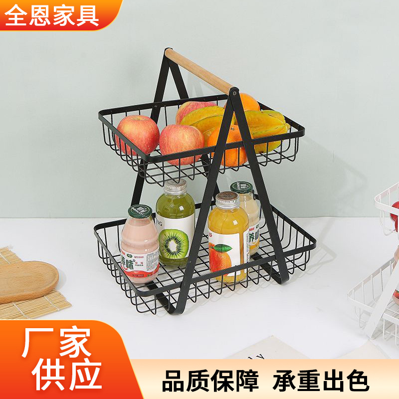 简约双层收纳篮家用厨房果蔬可沥水收纳架厂家供应便捷果蔬收纳篮