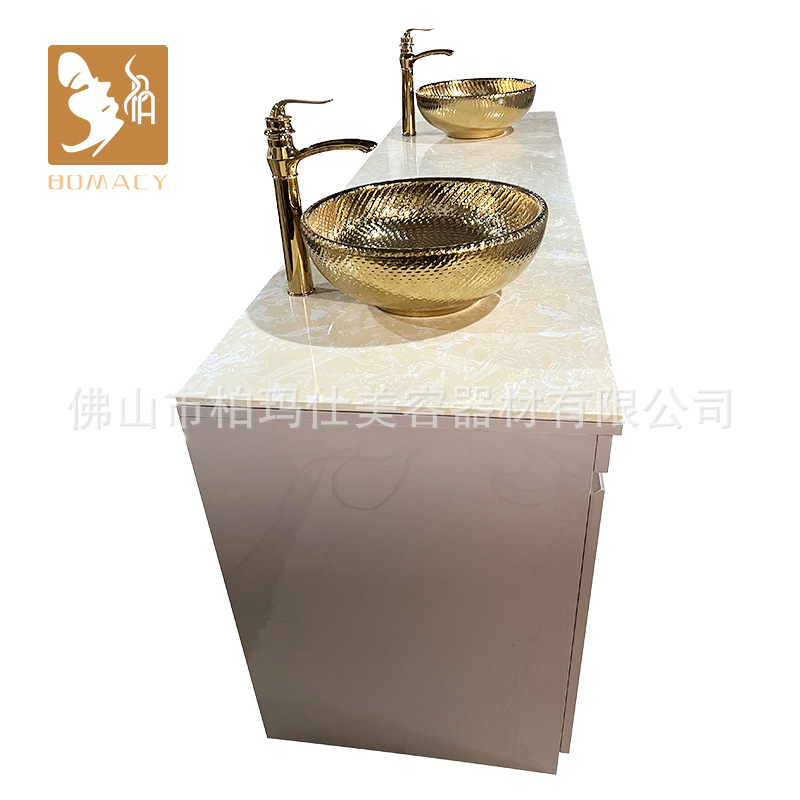 沙龙商用洗手台双盆浴室柜组合大理石双盆落地洗漱台家用洗脸盆柜