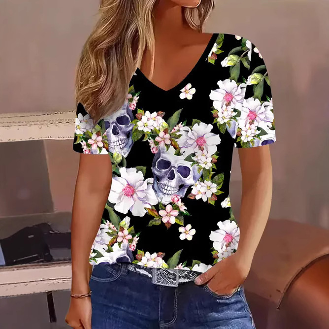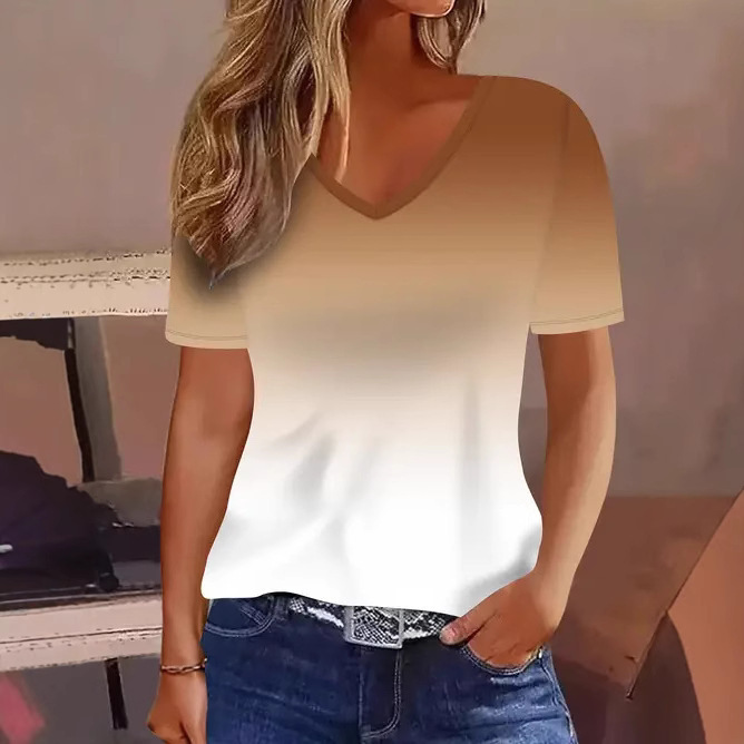 欧美跨境亚马逊速卖通2025新款休闲百搭时尚女士短袖V领休闲T恤