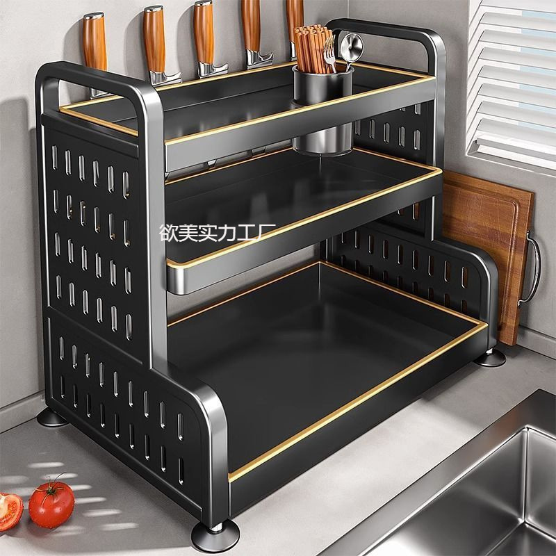 层数(规格) | 枪灰色2层50.1板架4钩+刀架筷筒-结构稳固防锈耐磨-大容量加厚加粗✓✓ | | 层数(规格) | 雅黑色3层30.1CM板架4钩-结构稳固防锈耐磨-大容量加厚加粗✓✓ |