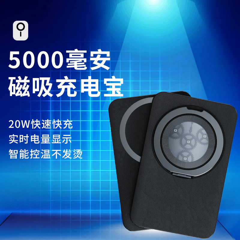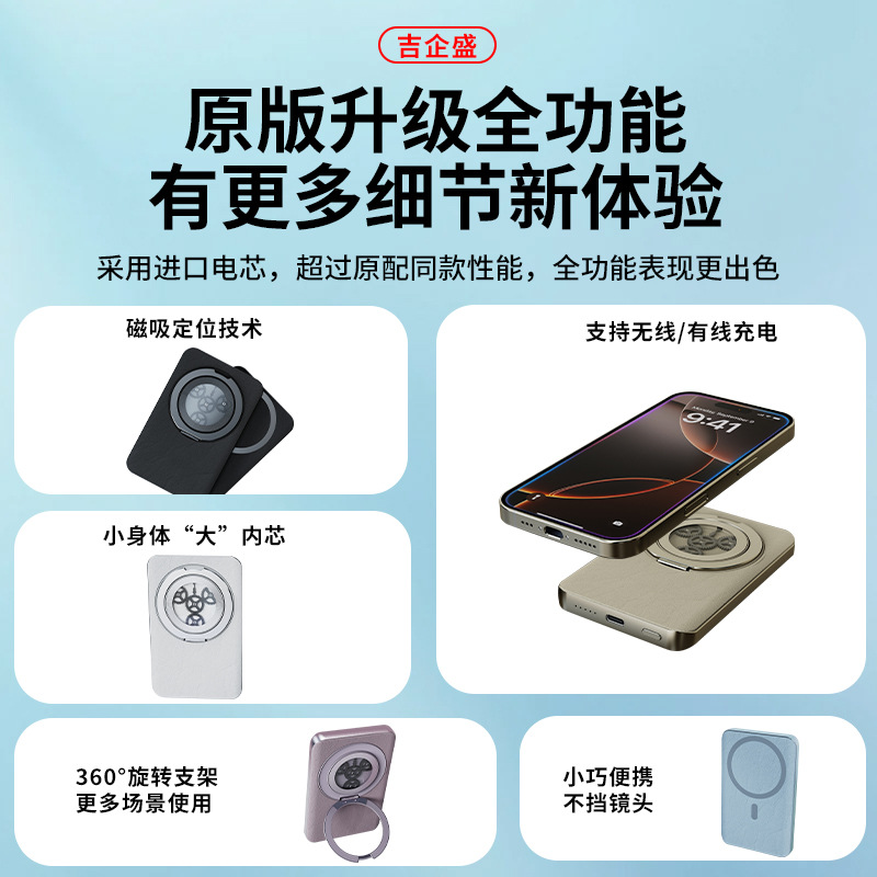 磁吸款无线充电宝适用苹果安卓360旋转支架跨境电源15W快充闪充
