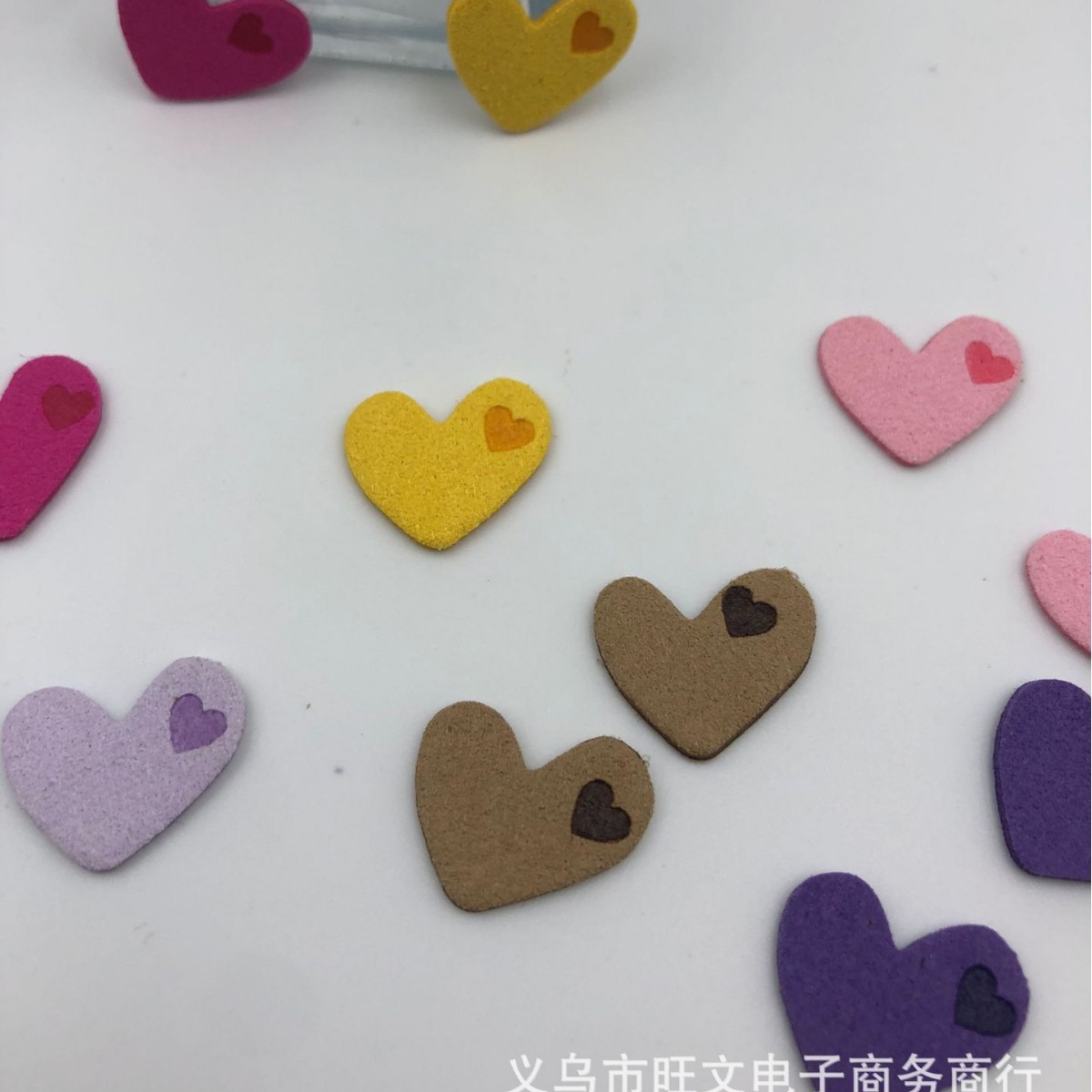 厂家直销超纤标签彩色双爱心手工缝纫围巾发夹帽子手套饰品配件标