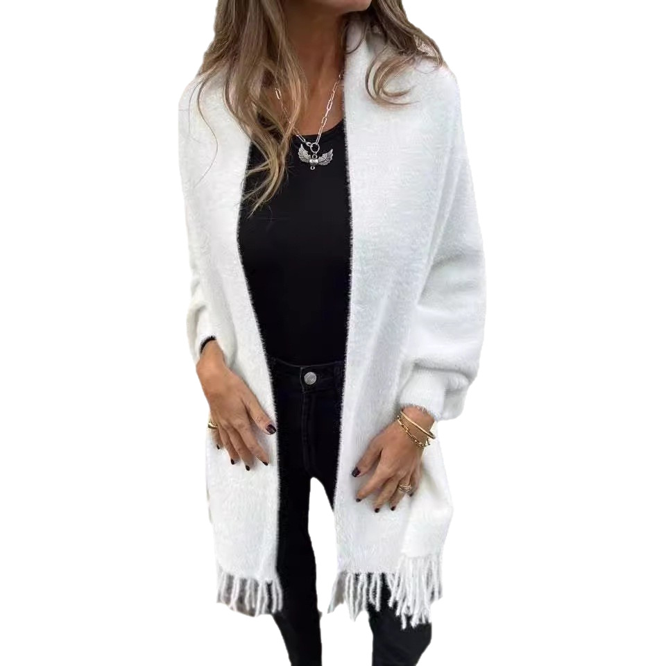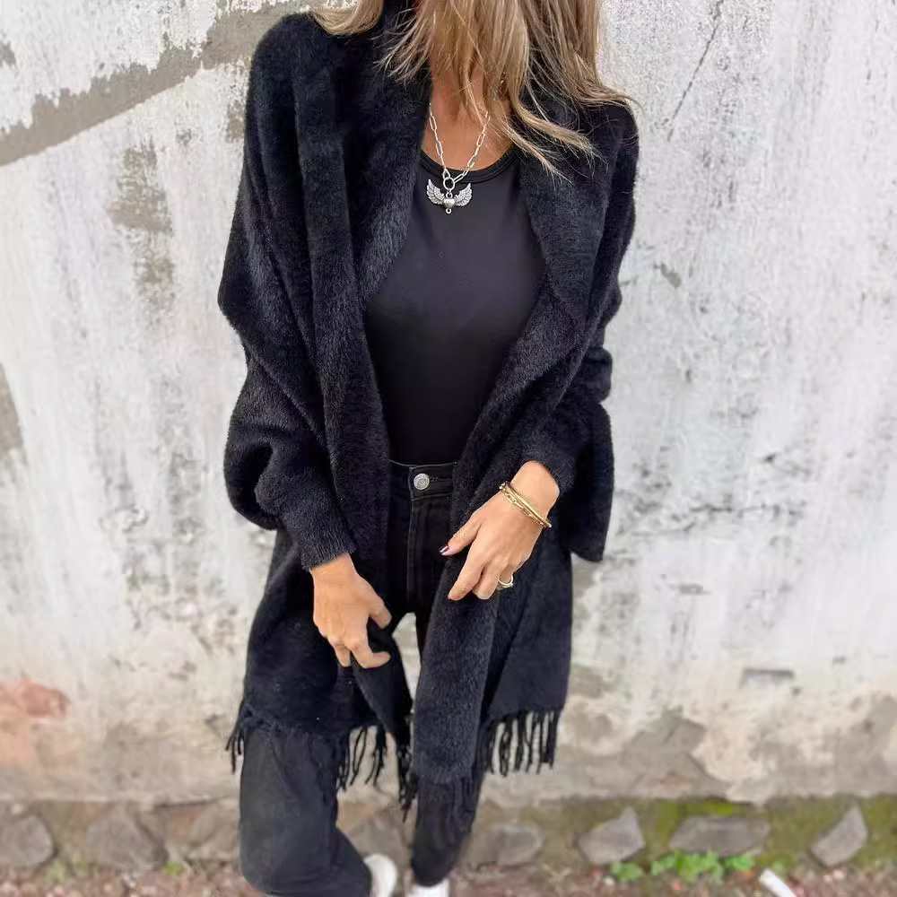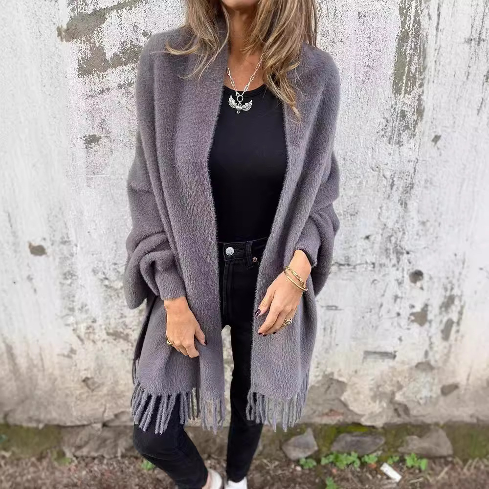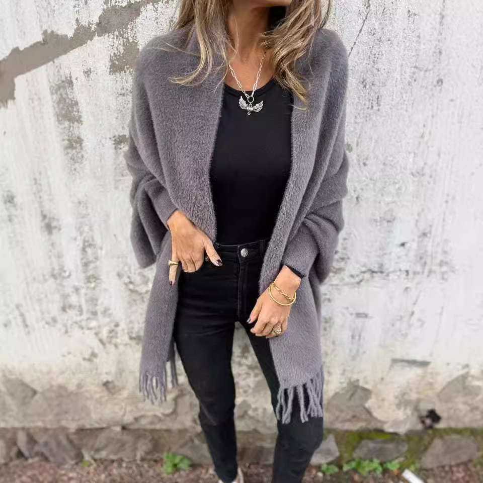 2024秋冬新款跨境外贸女装仿貂绒斗篷流苏披肩纯色加厚保暖蝙蝠