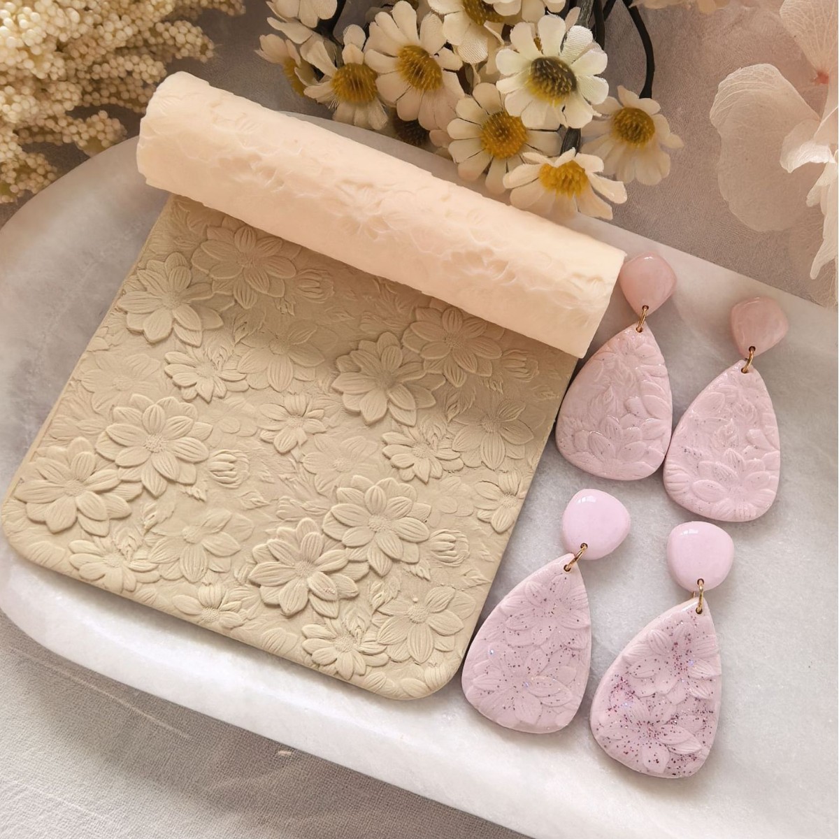 跨境荷花纹理软陶粘土 滚轴高精度肌理滚轴DIY耳饰珠宝工具批发