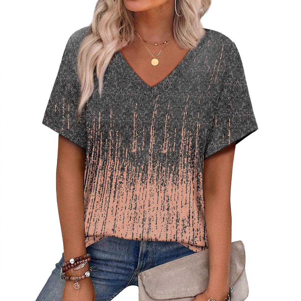 2025新款亚马逊外贸休闲百搭时尚潮流休闲短袖3D印花女士短袖