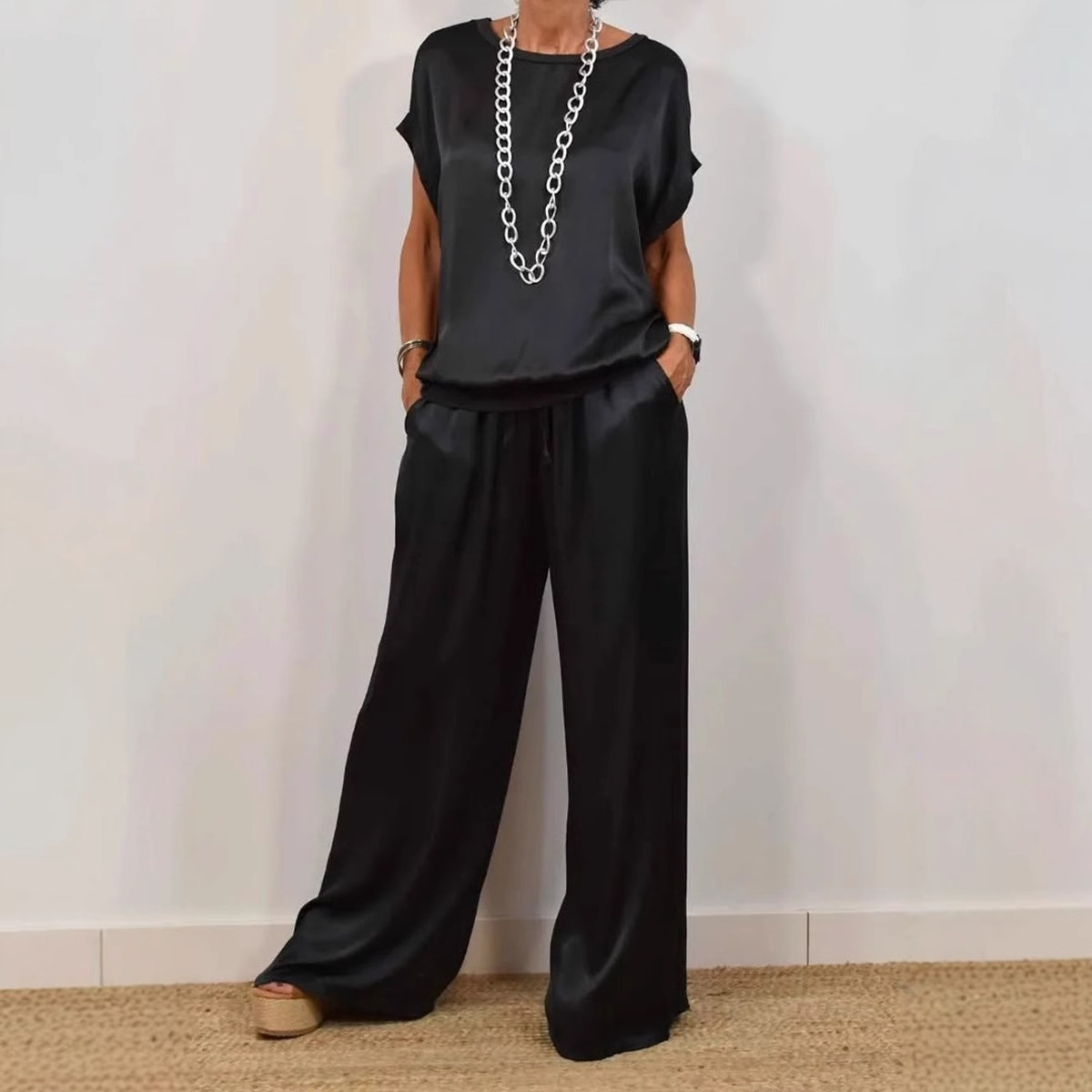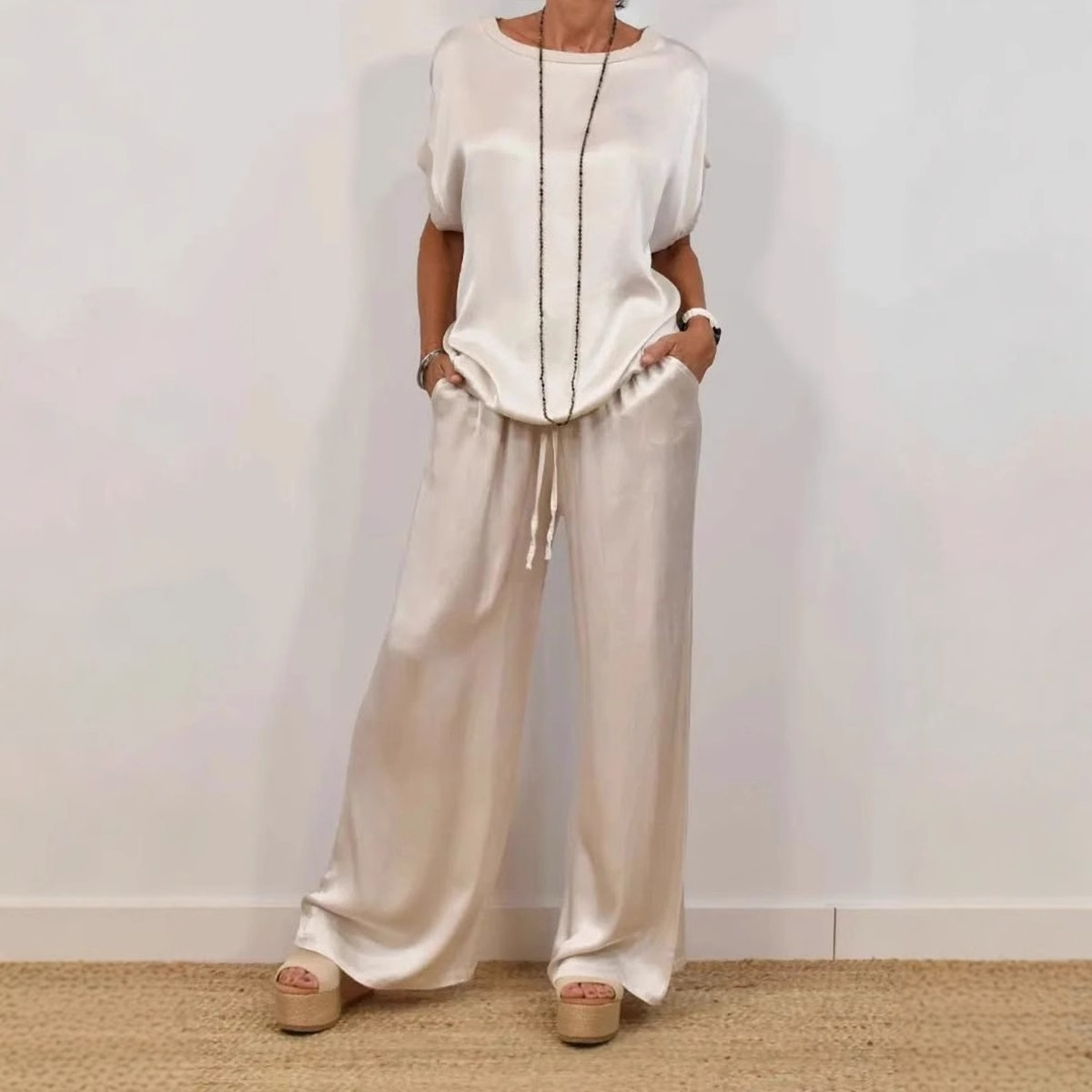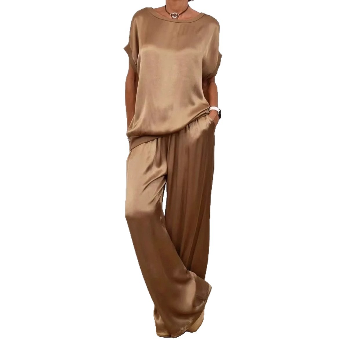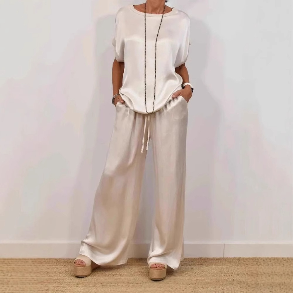 2025春夏欧美跨境外贸女士亚马逊独立站宽松衬衫阔腿长裤休闲套装