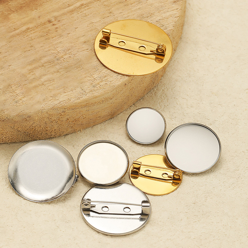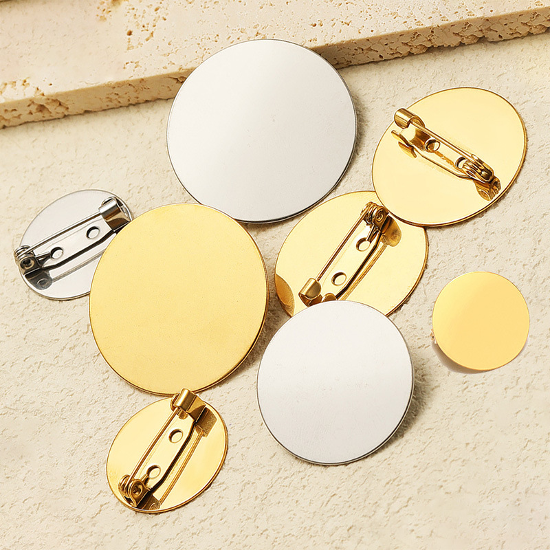 不锈钢胸针底座空白托盘凸面个性DIY可激光刻字配件胸针饰品批发
