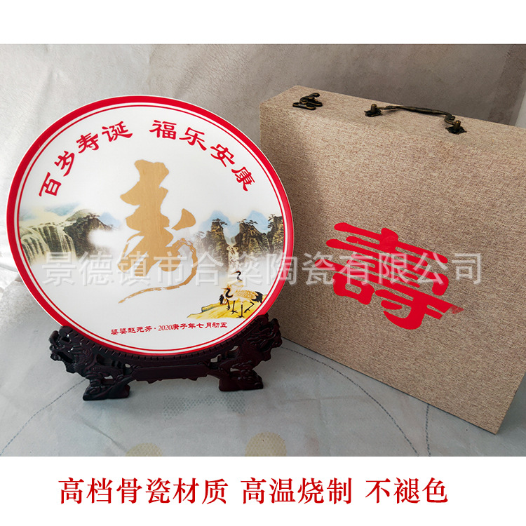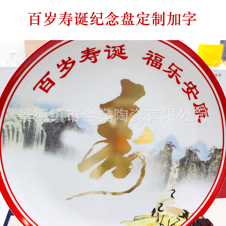 | 材质 | 骨瓷 | 货号 | 百岁老人寿诞寿盘定制加字 |