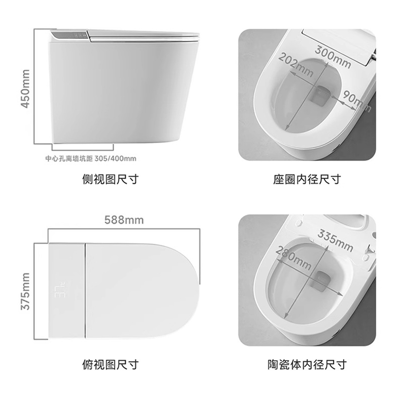 全自动一体式座便器虹吸式无水压要求小户型坐便器小尺寸智能马桶