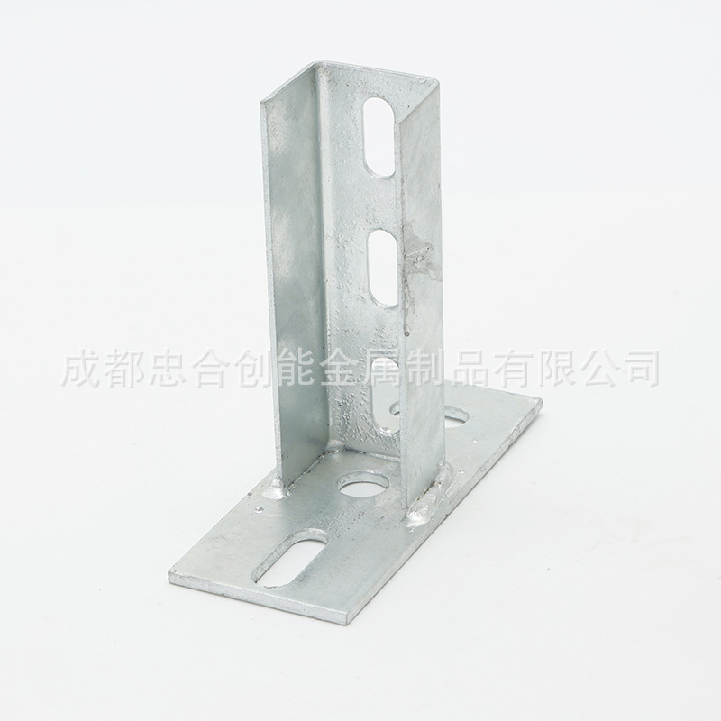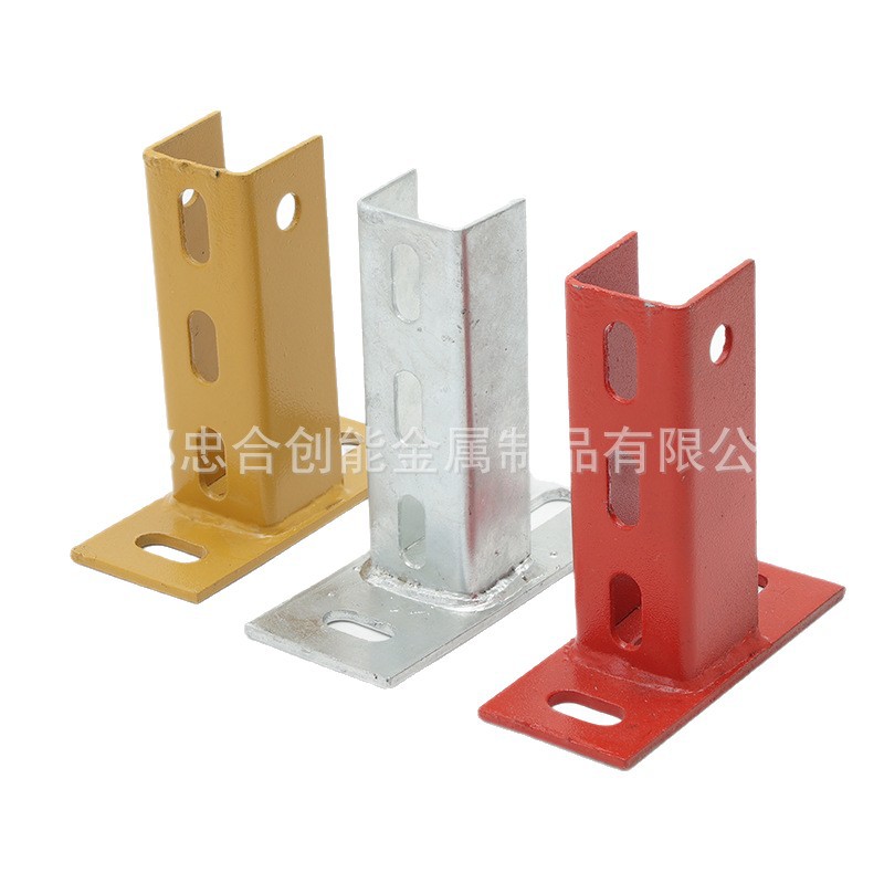 热镀锌光伏支架底座 免焊接底座 C型钢两孔连接底座配件四川厂家