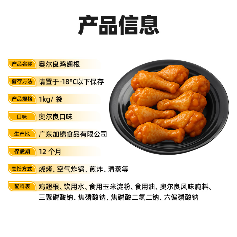 奥尔良鸡翅根翅尖腌制冷冻空气炸锅半成品商用商超代工贴牌定制