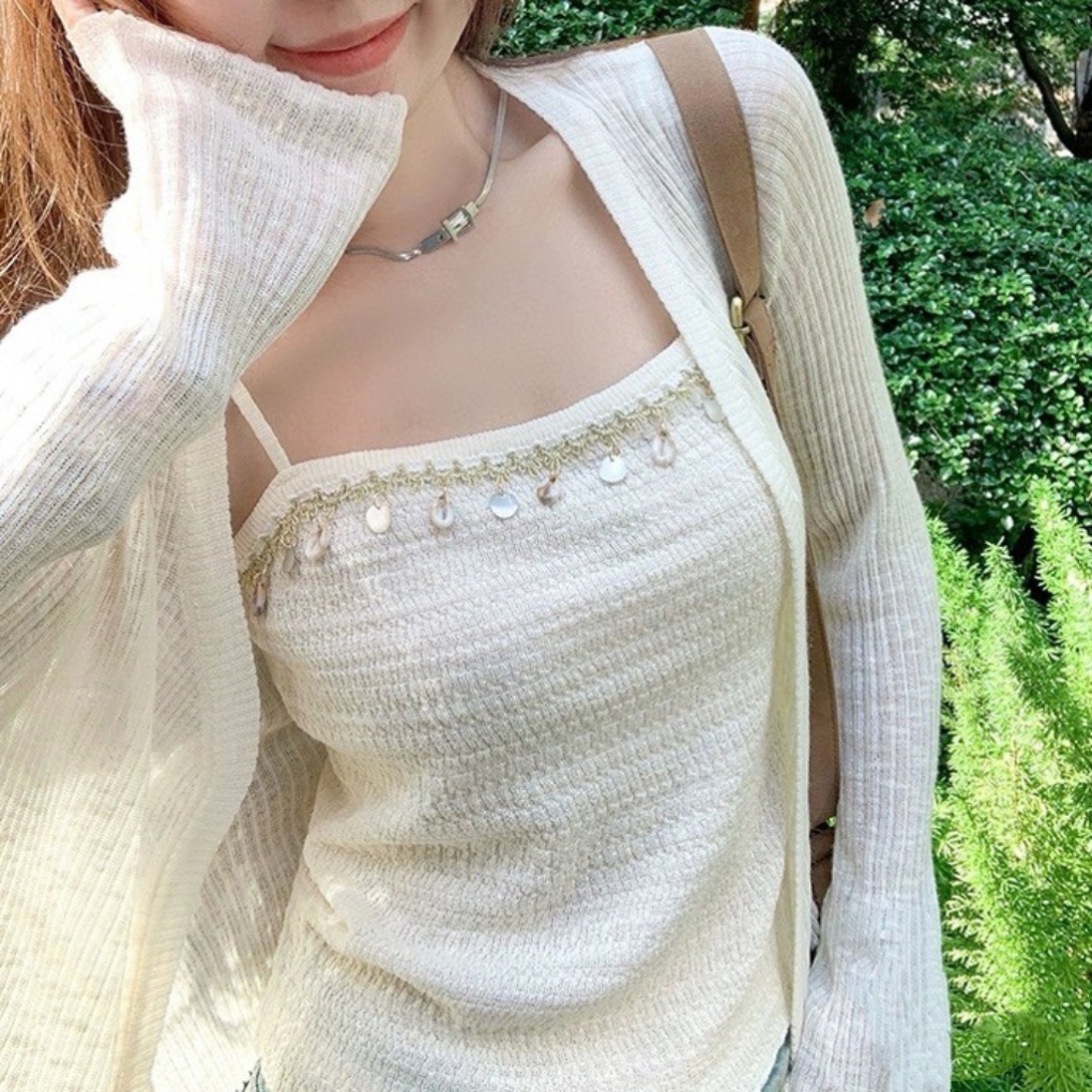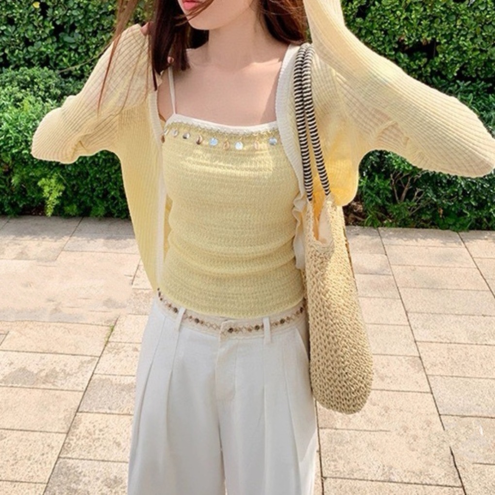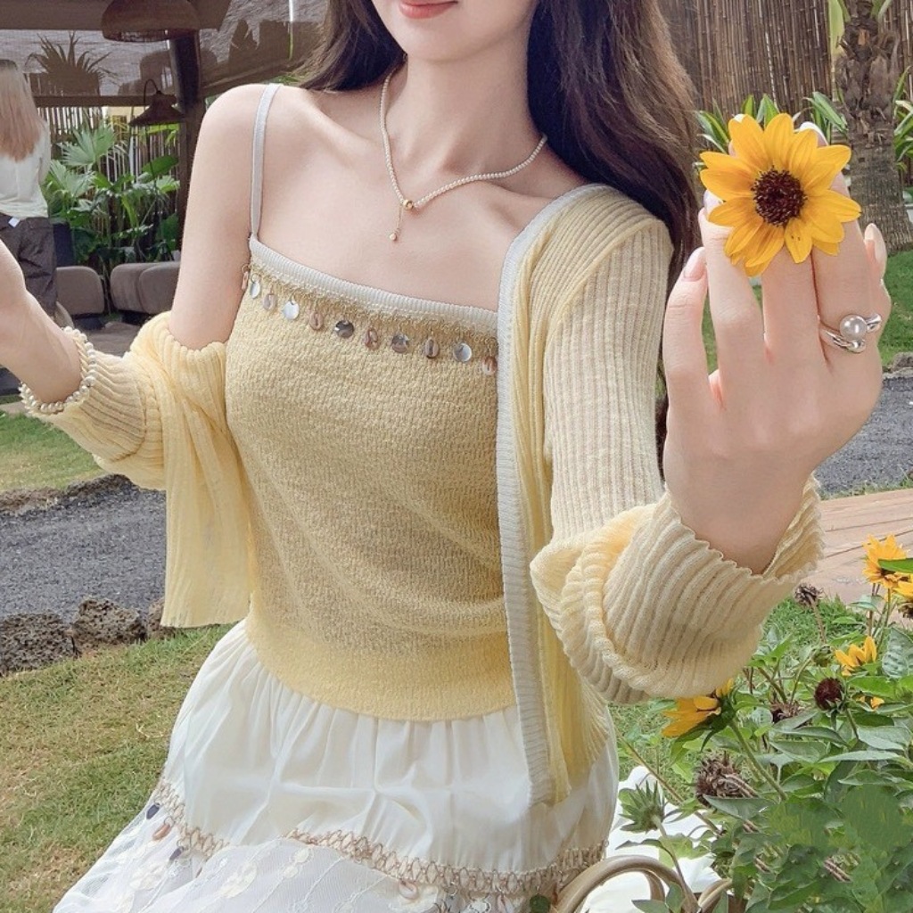 韩系重工亮片背心2025新品夏季新款韩版小众时尚防晒针织衫两件套